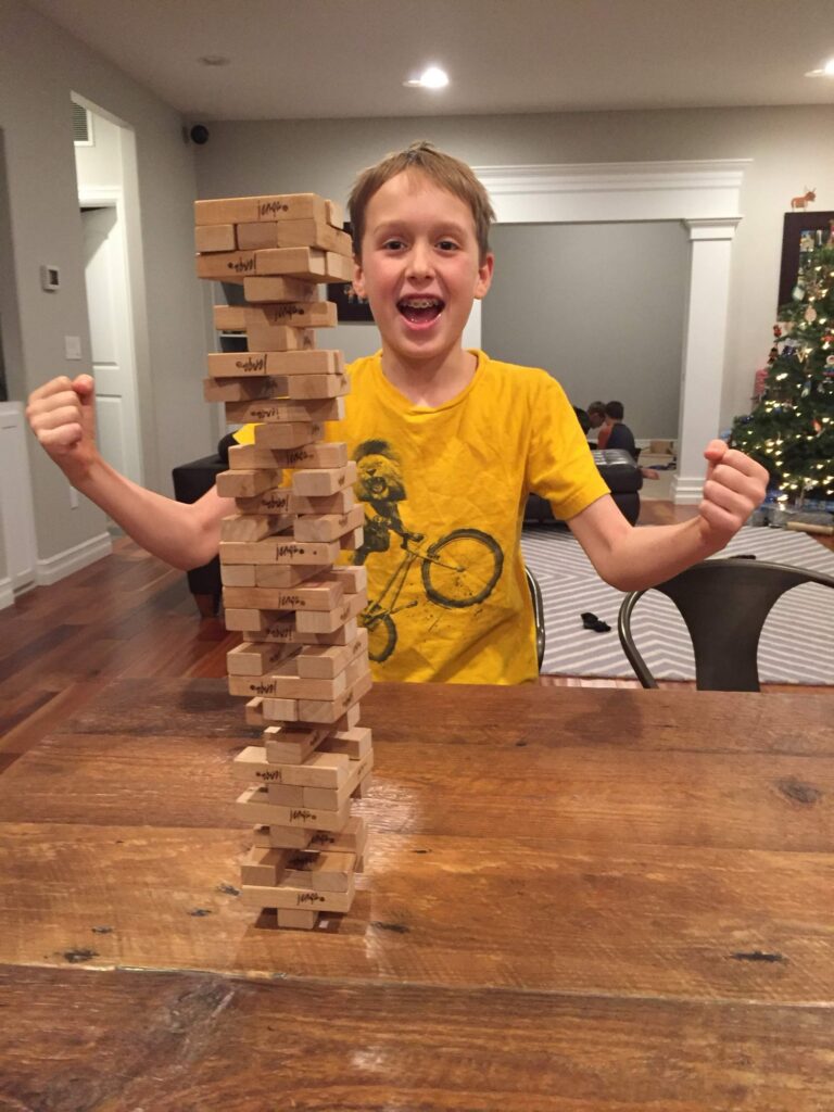 P.S. here is a picture from an epic battle we had at Jenga. We kept freaking out every time we wouldn’t make it fall. You were for sure that I would make it fall and then on your turn I was for sure that you would make it fall and we kept going and going until it was super tall. I’m pretty sure in the end you won…but it was a great memory!